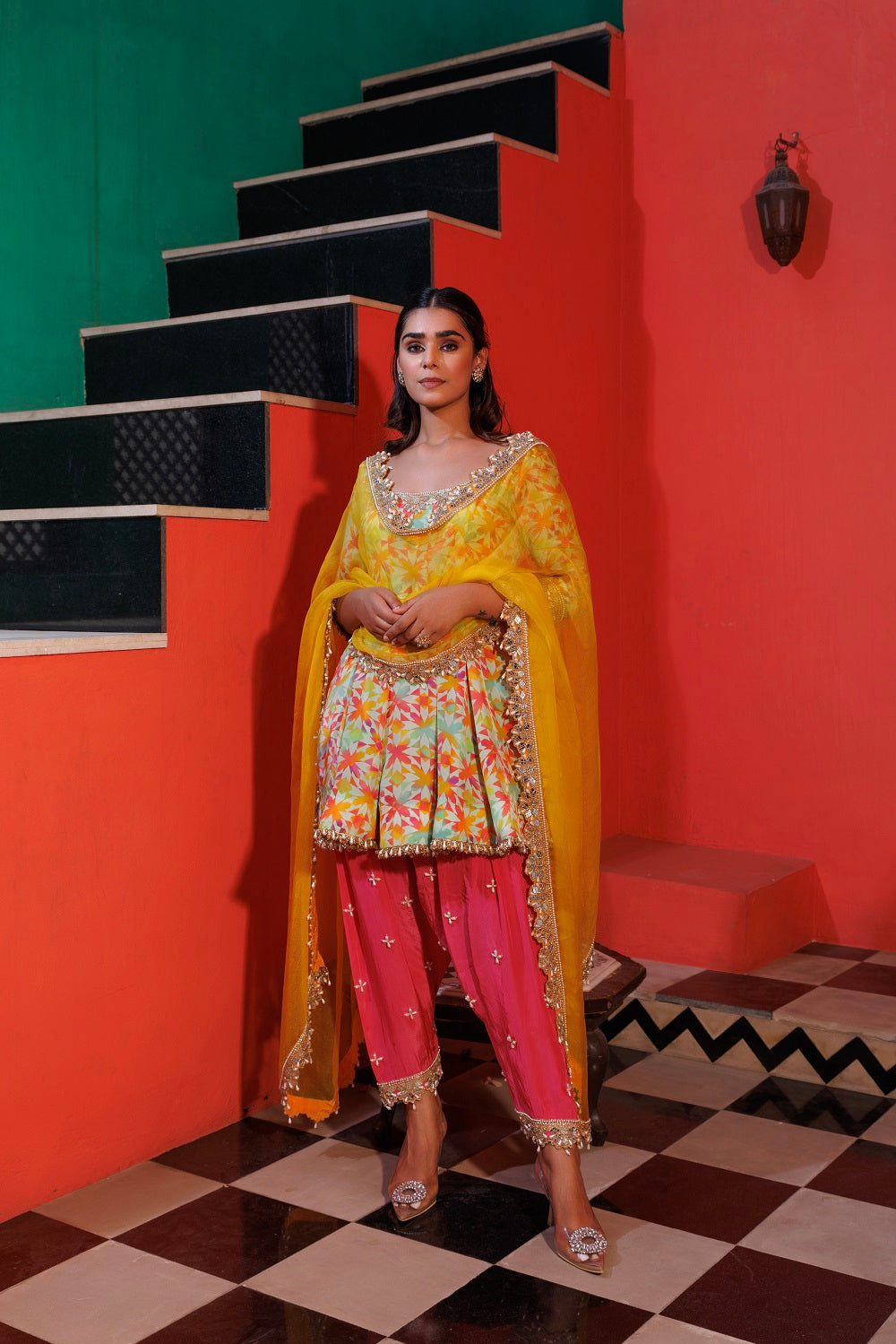 FEATURING A SALWAR SUIT WITH KALIDAR SHIRT AND HAND-EMBRIODERED ORGANZA DUPATTA.